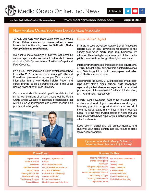 To help you gain even more value from your Media Group Online membership, we’ve added a new feature to the Website, How to Sell with Media Group Online as Your Partner.